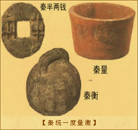 秦始皇以原秦国的度、量、衡为单位标准,淘汰与此不合的制度。秦廷在原商鞅颁布的标准器上再加刻诏书铭文,或另行制作相同的标准器刻上铭文,发到全国。与标准器不同的度、量、衡一律禁止使用。