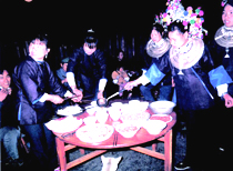侗族的大部分地区都是日进三餐。很多地方早餐吃油茶,因此早餐称为茶饭,吃油茶是侗族的一种特有饮食习惯,油茶中有糯米、花生、芝麻、黄豆、茶水等,人们的早餐即是油茶。吃油茶还有一个习俗,即只用一只筷子,吃完一碗将筷子还给主人表示吃饱了,如不还筷子则表示没吃饱,主人会再给你一碗油茶。午餐称为早饭。通道等地一日四餐,分为茶饭、早饭、日饭和晚饭。在许多地方,晚餐是一天中的正餐。进餐时一般都摆低桌矮凳,使用碗筷,合家围桌而食。