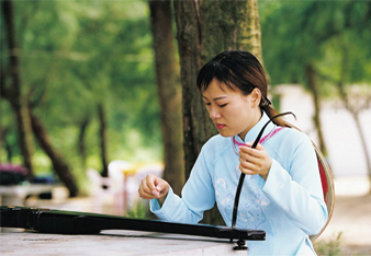 京族民间乐器,主要有独弦琴和吉弹。独弦琴适于表现节奏舒展、旋律悠长的乐曲,尤擅长演奏回音、颤音、滑音等装饰音,传统曲目有《高山流水》、《孤山寒影》、《骑马》等。吉弹,是三根弦的弹拨乐器,多用于唱哈的伴奏。