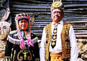高山族常用的衣料是用苎麻自织的“番布”,也有用藤皮和椰树皮制成,还有用成串贝珠缀在麻布上的“贝珠衣”。高山族喜欢用鸡尾、鸟羽做头饰。成年男子喜欢穿鲜艳的腰裙,女子穿长裙,高山族至今还保留着文身的习俗,但纹身的图案越来越小,越来越隐蔽。有的地区还有凿齿、束腹等古老风俗的遗存。
