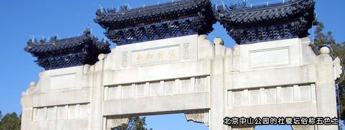 社是土神,稷是谷神。古代以农为本,因此与农业紧密联系的祭祀社稷活动,便很受重视。社稷祭由来已久,西周时掌管国家祭祀的大宗伯就有“以血祭祭社稷”的职责,又有小宗伯负责社稷坛的建立。社稷坛是祭祀的场所,按礼周王的社稷坛要用五色土铺垫。土色随其方位,东青、南赤、西白、北黑、中黄,以象征五方。现存的北京中山公园中名为“五色土”的方形大平坛,便是明朝永乐年间营建北京时所筑的社稷坛。周王祭社稷要用太牢,即牛、羊、猪三牲,还要钟鼓齐鸣,载歌载舞,其活动十分隆重热烈。