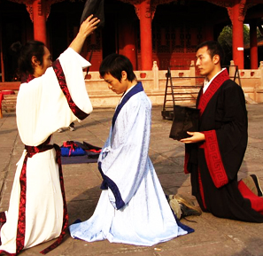 冠礼应当是从这种“成丁礼”演变而来的。《礼记·冠义》说,冠礼是“成人之道也”,“将责成人礼焉也”,要按照“为人子,为人弟,为人臣,为人少者”四个方面的礼的规范加以约束,使之成为具有“孝、悌、忠、顺”完美品德的人。