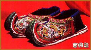 古代叫屦、履,现在叫鞋。鞋字首见于南朝梁顾野王的《玉篇》,是鞵的异体字。《颜氏家训·治家》:“邺下有一领军,贪积已甚……后坐事伏法,籍其家产,麻鞋一屋,弊衣数库,其余财宝,不可胜言。”白居易《花线毯》:“美人蹋上歌舞来,罗袜绣鞵随步没。”《上阳人》:“小头鞵履窄衣裳,青黛点眉眉细长。”